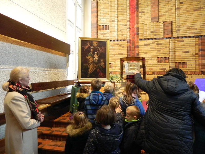 Obecność obrazu i modlitwy w różnych momentach dnia przypominały także o szczególnej roli św. Józefa dla nas jako wzoru i patrona zarówno wychowawców, jak i wychowanków – dzieci i młodzieży. Dlatego we wtorkowe przedpołudnie młodzież naszej szkoły i dzieci z przedszkola przychodziły do obrazu św. Józefa na modlitwę. Ważną zachętą do ponownego zawierzenia naszych dzieł wychowawczych św. Józefowi stanowił towarzyszący nawiedzeniu obrazu list Ojca Świętego Franciszka, który udzielał specjalnego apostolskiego błogosławieństwa biorącym udział w peregrynacji. W tym liście Ojciec Święty wspomina właśnie o misji św. Józefa jako wzoru dla każdego wychowawcy – dla rodziców, kapłanów i wszystkich podejmujących dzieła wychowawcze w Kościele, by byli na wzór Świętego dobrymi opiekunami drogi swoich podopiecznych, by pomagali im wzrastać w mądrości i łasce…