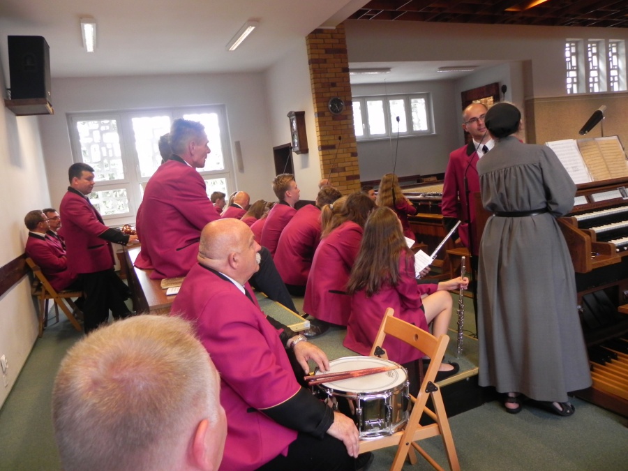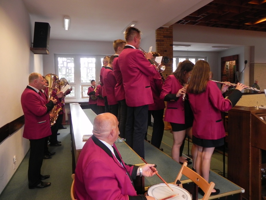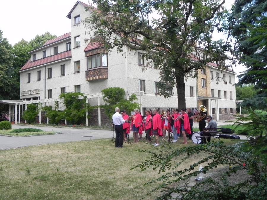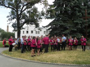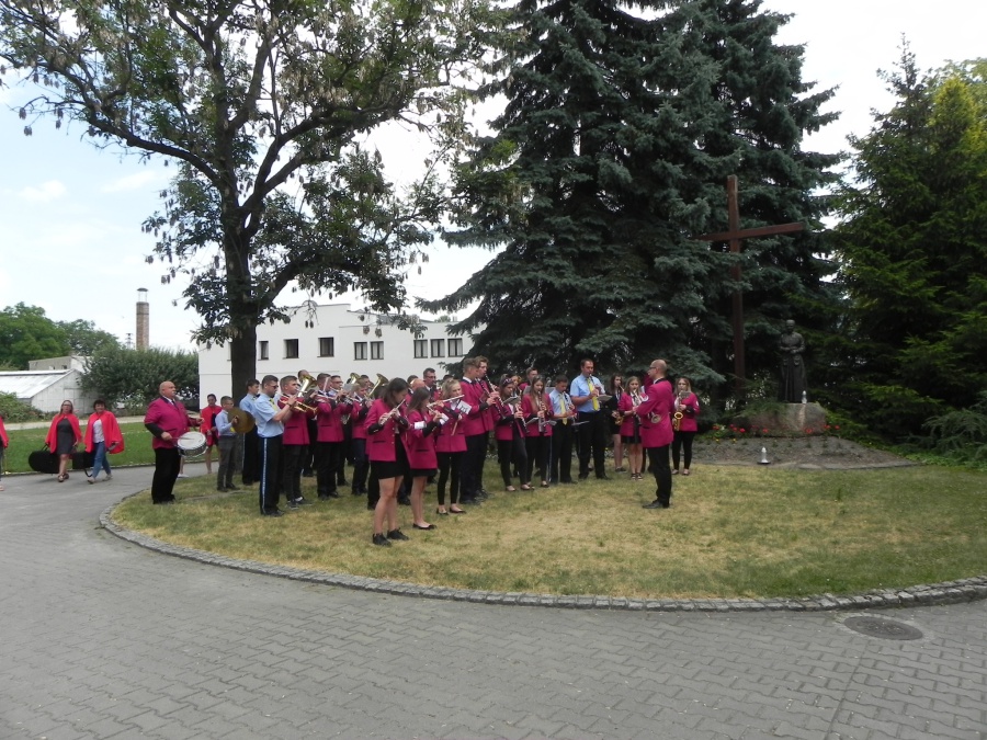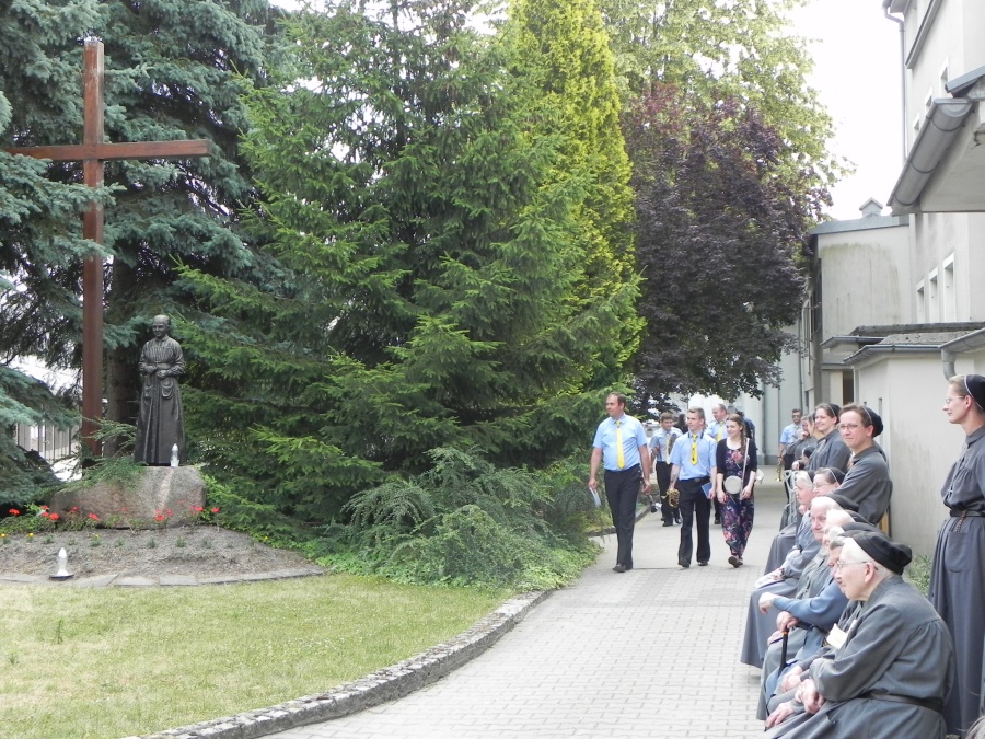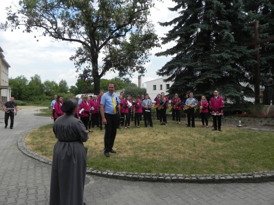 W niedzielę, 17 czerwca 2018, Sanktuarium św. Urszuli było gospodarzem i świadkiem wyjątkowego wydarzenia muzycznego: na dziedzińcu zagrały trzy orkiestry dęte… Ale samo to nie jest jeszcze czymś szczególnie nadzwyczajnym. Istotne było to, że orkiestry pochodziły z trzech zaprzyjaźnionych ze sobą miast czy gmin – z Pniew, Kościerzyny, gminy partnerskiej Pniew, i Sieradza, miasta, któremu również patronuje św. Urszula. Niedzielny koncert w Sanktuarium św. Urszuli odbywał się w bardzo radosnej i przyjacielskiej atmosferze. Dało się odczuć, że muzycy z tych trzech miejsc nie są sobie już obcy – poprzedniego dnia bowiem na Rynku już miał miejsce wspólny koncert tych trzech zespołów, który wpisał się w obchody 100-lecia niepodległości Polski. W niedzielę rano każdy z zespołów uczestniczył we Mszy św. w jednym z pniewskich kościołów: orkiestra z Kościerzyny u św. Wawrzyńca, sieradzki zespół w Sanktuarium św. Urszuli, a pniewska orkiestra u św. Jana. Z tego, co się słyszało w rozmowach między muzykami, wynika, że to wspólne koncertowanie jednak nie pozostanie wydarzeniem „wyjątkowym”, lecz wejdzie do historii jako „pierwsze” – jedne z wielu kolejnych…