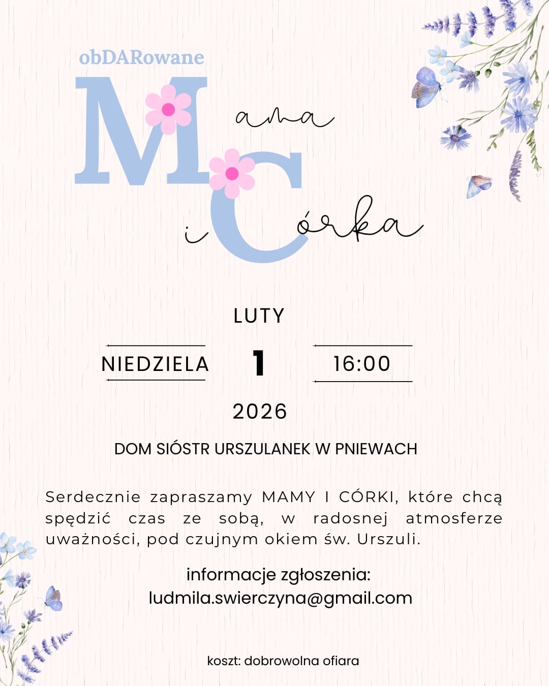 Siostry Urszulanki zapraszają, by wspólnie ucieszyć się z obDARowania jakie Bóg podarował Mamie przez Córkę i Córce przez Mamę